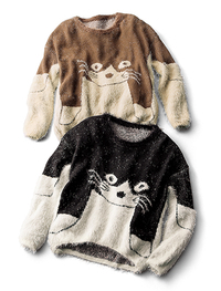 まるで本物の猫みたいなふわふわ感。衿ぐりにはより毛足の長いトリミングを施しました。前・後ろ、袖まで、どこから見ても楽しいセーターです。