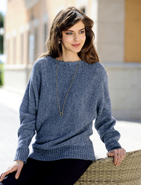 肩ヨークと袖は透け感のある天竺編み、衿と身頃はリブ編みで、透け感のコントラストを効かせた、シンプルなのに存在感のある1枚。