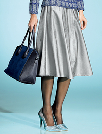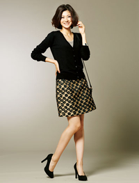 上品なインパクトを感じさせるジャカードのニットスカート。フレアーラインが大人可愛いコーディネートを形成するポイントに。