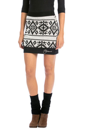 エスニックなパターンもモノトーン使いで大人っぽい印象に。レギンスとも高相性なミニタイトスカートです。