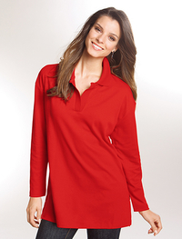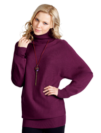ゆったりしたドルマンスリーブでリラックスした着心地。裾リブを長めにとったチュニック丈でスタイルアップ効果も。