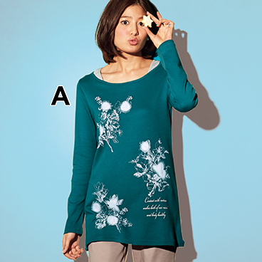 デザイン性の高い色・柄が魅力のホールマーク。1枚で旬スタイルがキマります。気になるお腹やお尻をカバーできる着丈もうれしいですね。