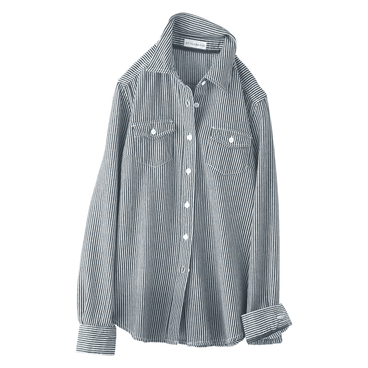 カジュアルスタイルの鉄板デニムシャツ。バイオ加工で洗いをかけ、やわらかな風合いに仕上げました。スカート・パンツどちらにも好バランスの着丈も◎。