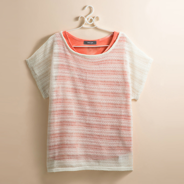 透けて見えるインナーのボーダー柄がさりげなくて素敵なプルオーバーです。普段使いにぴったりですよ。