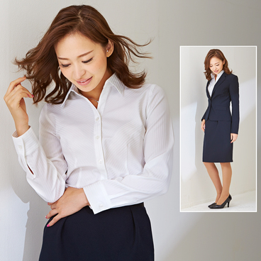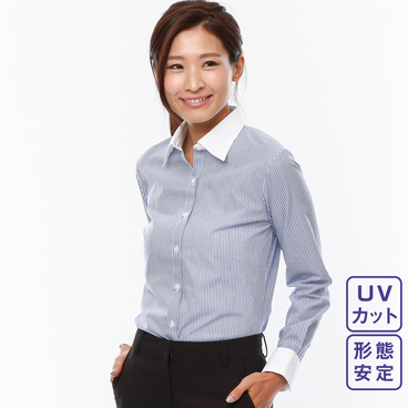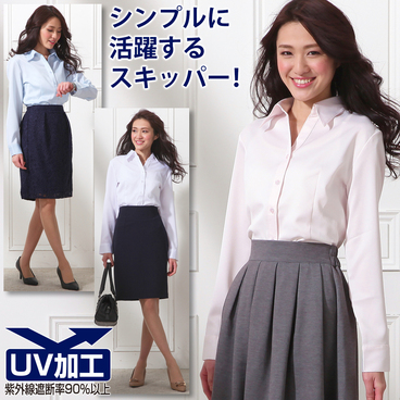 ビジネスシーンで清潔感があり好印象を与える定番クレリックタイプ働く女性を応援する形態安定&UVカット付◎