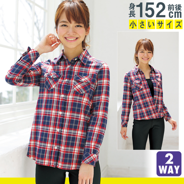 身長152cm前後の小柄な方特有のお悩みを解決するこだわり設計です!裾のボタンを留めてカシュクールとしても着れる定番チェックの使えるシャツです。