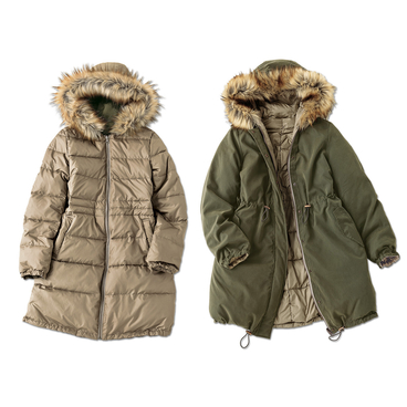 フロントのフェイクファーが上品な商品。背中部分はやわらかなニット素材でボリュームが出過ぎないすっきりとしたシルエットに。