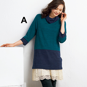ニット風カットソーチュニック(選べるデザイン)