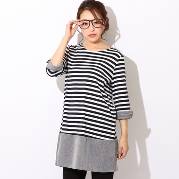 1枚でコーデ完成◎異素材重ね着風ロングチュニック