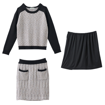 ニットセットアップ(プルオーバー+スカート)(ペチコート付)