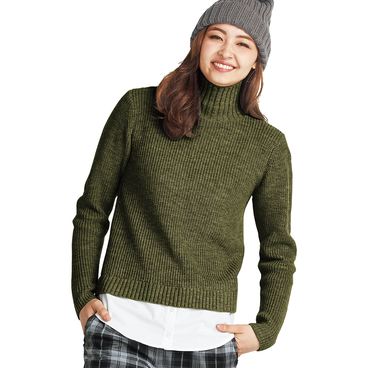 ハイゲージのタートルニットです。お手持ちのお洋服に合せるだけで、簡単にレイヤード風のコーディネートが楽しめます。