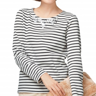 人気のバイカラーデザインです。衿・裾が好アクセント。シャツを重ね着しているように見えて1枚だから、もたつかずすっきり着こなせます。