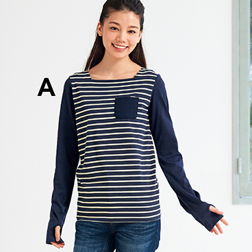 スクエアネック指穴ボーダープルオーバー