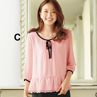 裾レースバイカラーブラウス(七分袖)(裏地付)