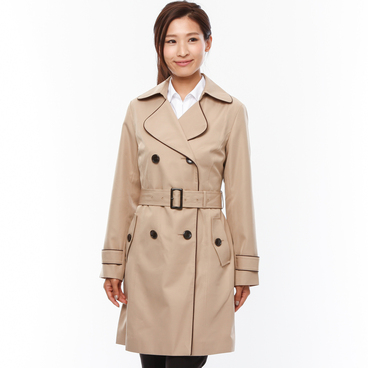 なめらかな表面感で、着心地のよいポンチ素材。ウエストをシェイプした短め丈に、女性らしいラインを作る斜めの前立てデザインで、コンパクトな着こなしを提案。