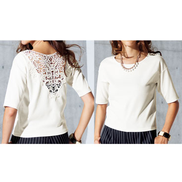後レースカットソープルオーバー(五分袖)(ポンチ素材)