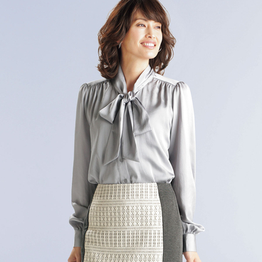 異素材ボウタイカットソーブラウス(抗菌防臭)