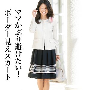 ママかぶり避けたい!という方にオススメ。完全なお揃いではなくテイストを合わせるちょこっとおソロが楽しめる、ボーダー見えスカートが新鮮なセレモニースーツ。