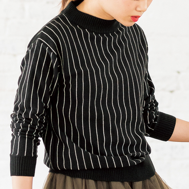 ストライプハイネックセーター