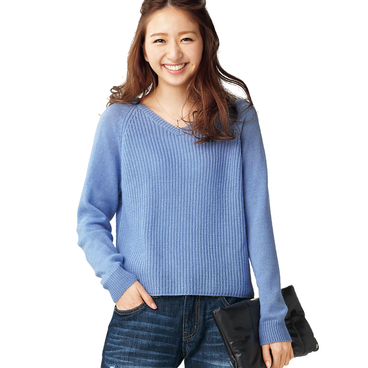 洗えるV首セーター(毛玉防止加工糸使用)