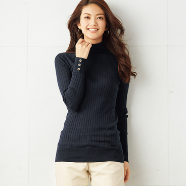 袖口ボタン使いワイドリブタートル