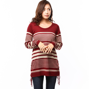 ★一枚着るだけで着映えする誰でも似合うボーダーニットチュニックサイドのドロスト紐でお好みで表情変化を楽しんで◎おしりも隠れるチュニック丈は温かさも確保できるので秋冬には欠かせない♪