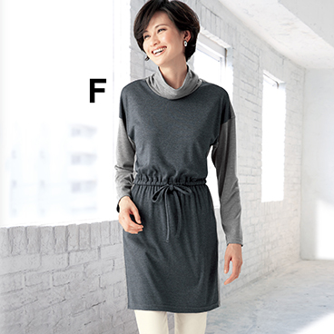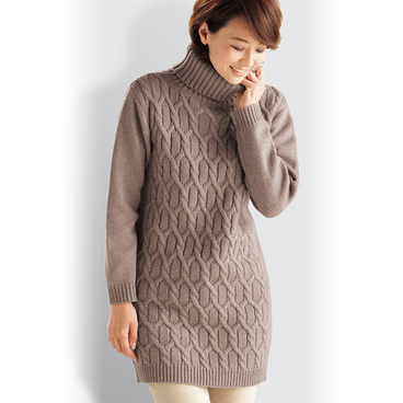 ウール70%であたたかく、更にタートルネック&チュニック丈で、首や腰まわりもゆったり包みます。寒さ対策に活躍する1枚です。