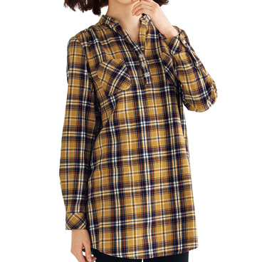 ビエラならではのぬくもりのある肌ざわり。この時期のコーディネートにぴったりの微起毛シャツです。ヒップやお腹まわりが隠れる安心の丈感で、体型カバーもバッチリ。