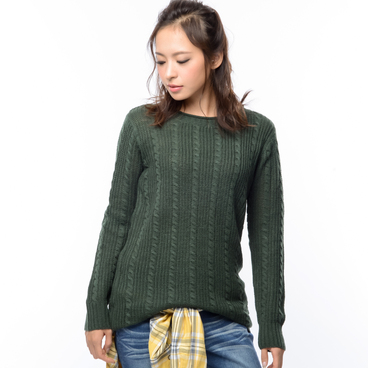 表情感が魅力的な片あぜ編みのミドルゲージニットです。コンパクトな上半身から裾にかけて、ゆるやかに広がるフレアラインが◎。
