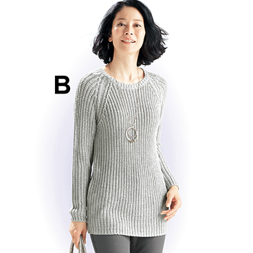 縦ラインの柄編み入りだから、ほっそり見えて体型を目立たせにくいデザインです。気になるヒップをカバーするロング丈は細身のパンツと相性バツグン!