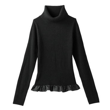 シンプルに見えてワザあり!黒ニットの裾にフリルをあしらって、モード×ガーリーなデザインに仕上げました。