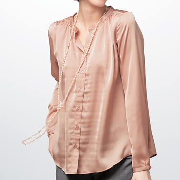 パウダーサテンスタンドフリル衿ブラウス