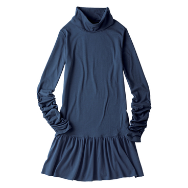 着心地のいい裏毛と軽やかなシフォンの、異素材切替デザインで仕上げました。裾から旬のプリーツがのぞくレイヤード風デザインが新鮮です。