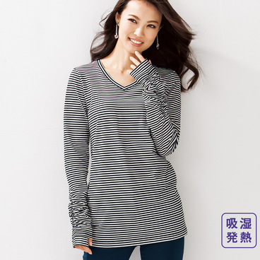 異素材使いボーダーチュニック(長袖)