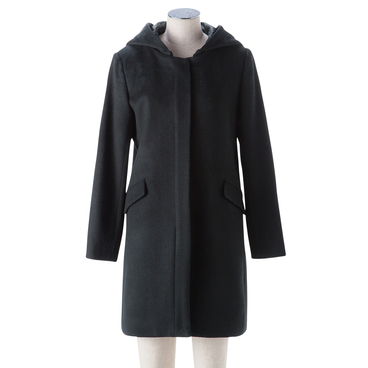 小さい/ウール100%フード付ノーカラーコート