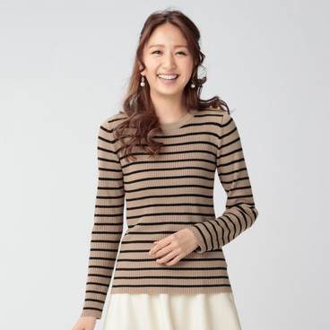 ストライプを大人っぽく配色したデザイン。コンパクトシルエット&縦ラインの視覚効果で細見せも期待できます。