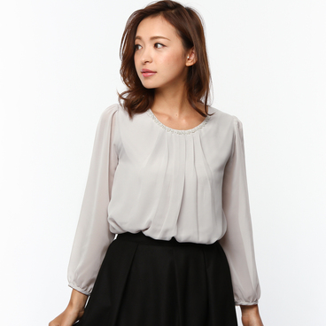 衿ビジューボーダープルオーバー