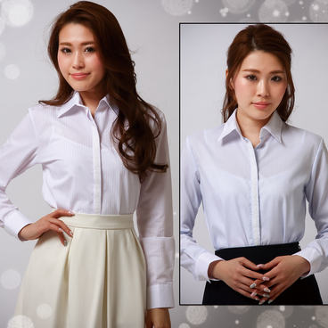 形態安定!可愛い前立レースクレリックシャツ