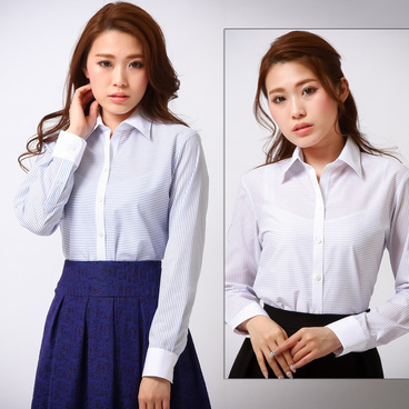 ★珍しいボーダー柄のシャツ!白色を効かせた配色が清涼感のあるさわやかな印象に!★形態安定加工だから、お自宅の洗濯機で洗えてお手入れも楽々♪