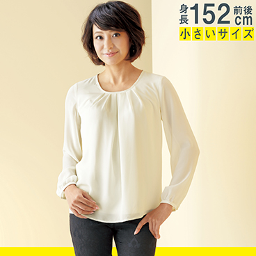 身長152cm前後の小柄な方特有のお悩みを解決するこだわり設計です!身頃部はカットソーとシフォンの二重仕立て。
