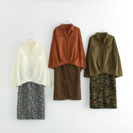 ■身頃:シルエットはやや細めにデザインにしており、女性らしさを演出します。ウエストは総ゴム仕様で、着脱しやすいすっきりとした印象。