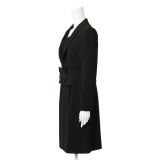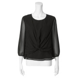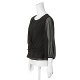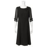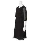 ニュイブラックフォーマル袖シフォン前開きワンピース