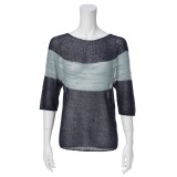 ミドルゲージで編み立てた、つなぎ目や縫い目がないシームレスデザインのバイカラー七分袖プルオーバーです。