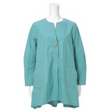 袖をニットで切り替え、リネン100%の布帛と組み合わせた一重仕立てのコートです。しっかりとした仕立てのコートでありながら、ニットのパーツで柔らかさを表現しています。■身頃:身頃はリネン100%の布帛のキャンバス生地を使用。鮮やかな色合いが当ブランドのニットに相性ぴったりです。ニットの部分は、コットンの細いヤーンをベースに使い、袋状に編んだジャガード柄。柔らかく繊細な肌触りがポイントです。柄の間にフリル柄を無数にほどこしたり、グラデーションカラーを入れてより複雑に見えるような表情に仕上げました。【…