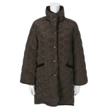 表地にタフタ素材を使用し、サークル柄のキルティングをほどこした中綿入りのコートです。■身頃:表地には、サークル柄が立体的に見えるように、高密度のタフタ素材を使用。