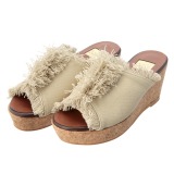 オチョアフリンジデザインウェッジヒールサンダル