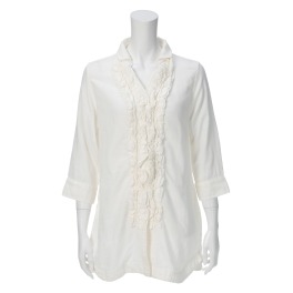 ビュイダブルガーゼフリルアクセントロングブラウス