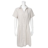 ビュイフレンチリネンピンタックアクセント半袖ワンピース