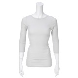 エジプトギザ綿混素材を使用した七分袖プルオーバーです。■身頃:ネックラインのバインダーは同素材の糸を目面を細かくして編み立てました。