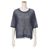 アンリック オー ブルーフレンチリネン100%メッシュ編み五分袖プルオーバー
